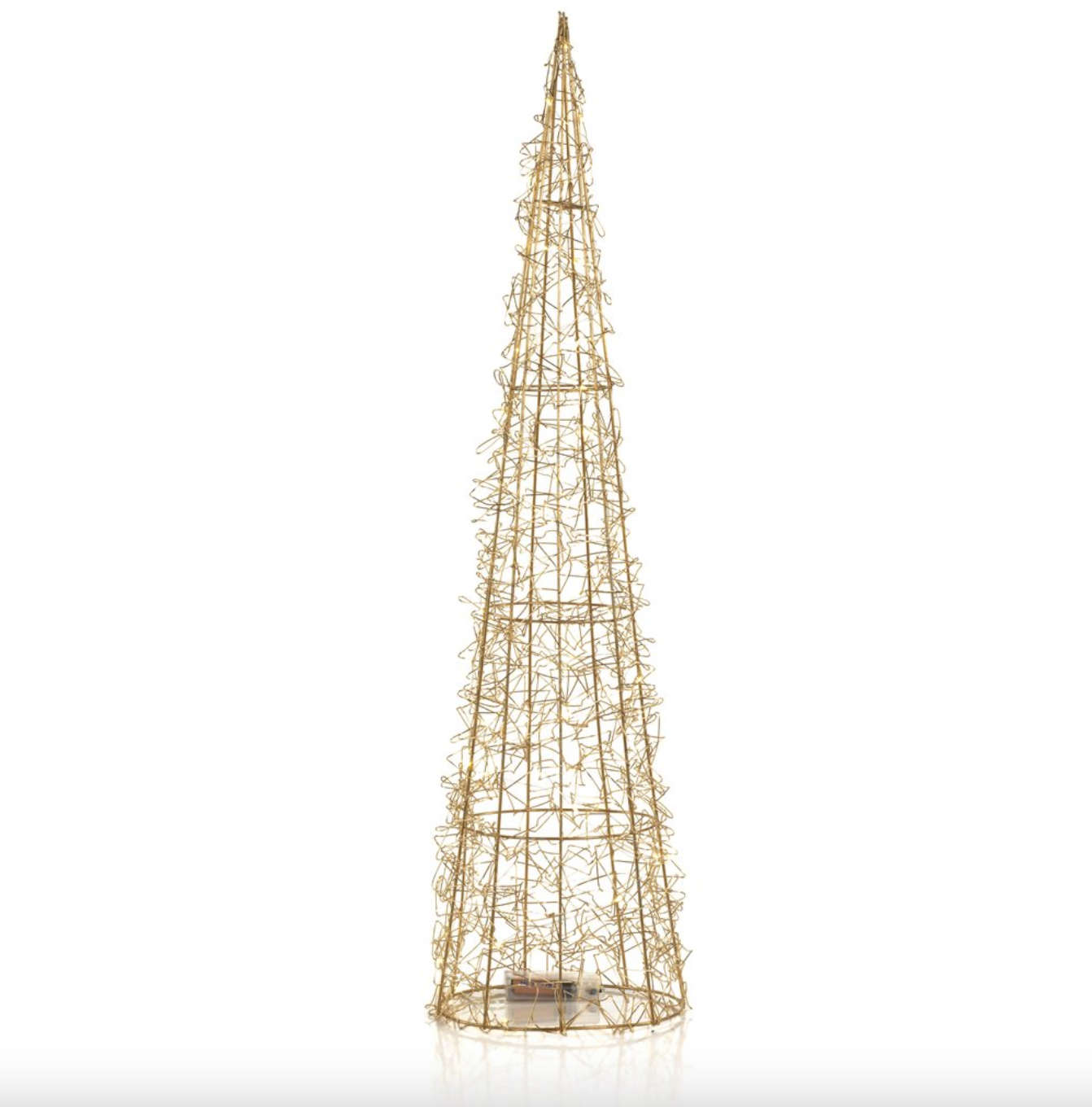 Simple and stylish, these wire Christmas trees are adorned with tiny LED lights on fine gold wire. Beautiful alone or as a set, bring light and festivity into your home with these holiday decorations.