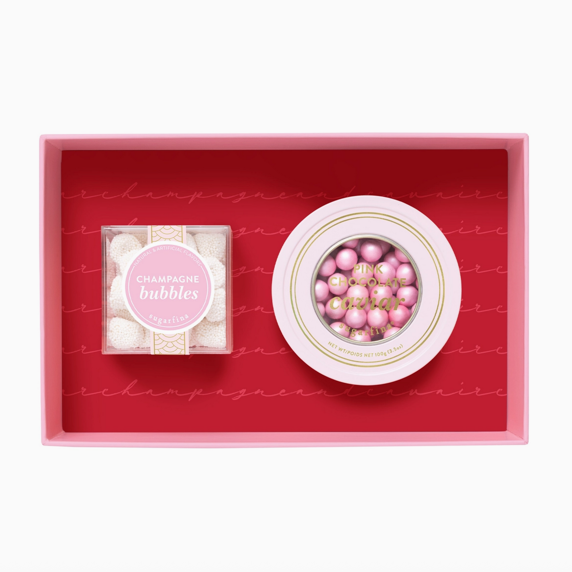 Milk Chocolate (Sugar, Whole Milk Powder, Cocoa Butter, Cocoa Mass, Soy Lecithin, Natural Vanilla Flavor), Sugar, Color (Mica-Based Pearlescent Pigments, Titanium Dioxide, Carmines), Cellulose, Hypromellose, Mono- & Diglycerides, Arabic Gum, Rice Starch, Natural Vanilla Flavor, Carnauba Wax.